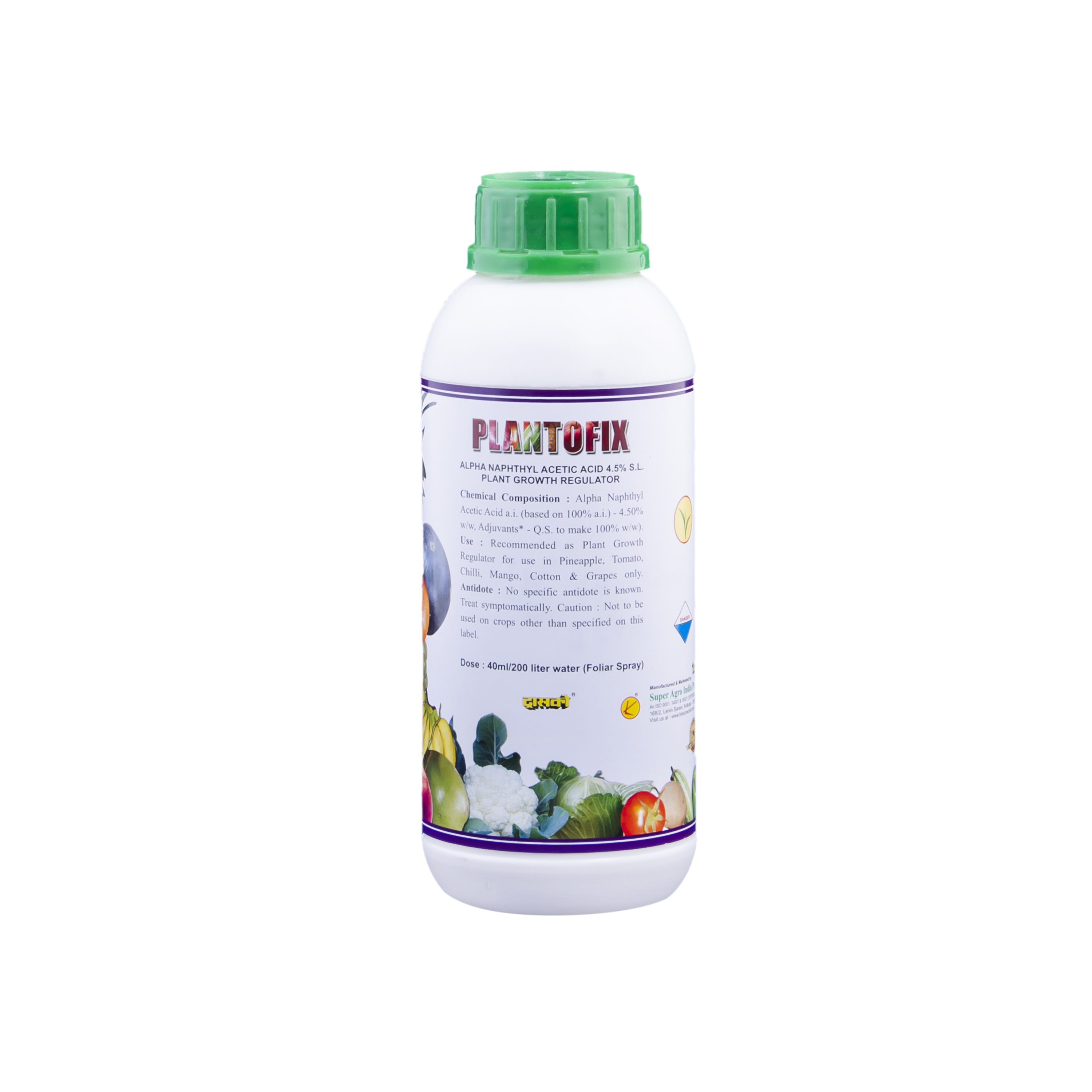 As a foliar spray - contains ANA-4.5% S.L to check fruit, flower drop & stimulate growth. It is a potent PGR, prevents premature flower, bud, fruit dropping, enhances rooting, enlarges fruit size, Sensitive to cucurbitaceous family. Effective on fruit, vegetable, flowers etc. very effective in bud break for tea plants. TRA recommends the use of the above product after a hail damage @ 40ml/200 lit water to initiate quick shoot growth and bud break