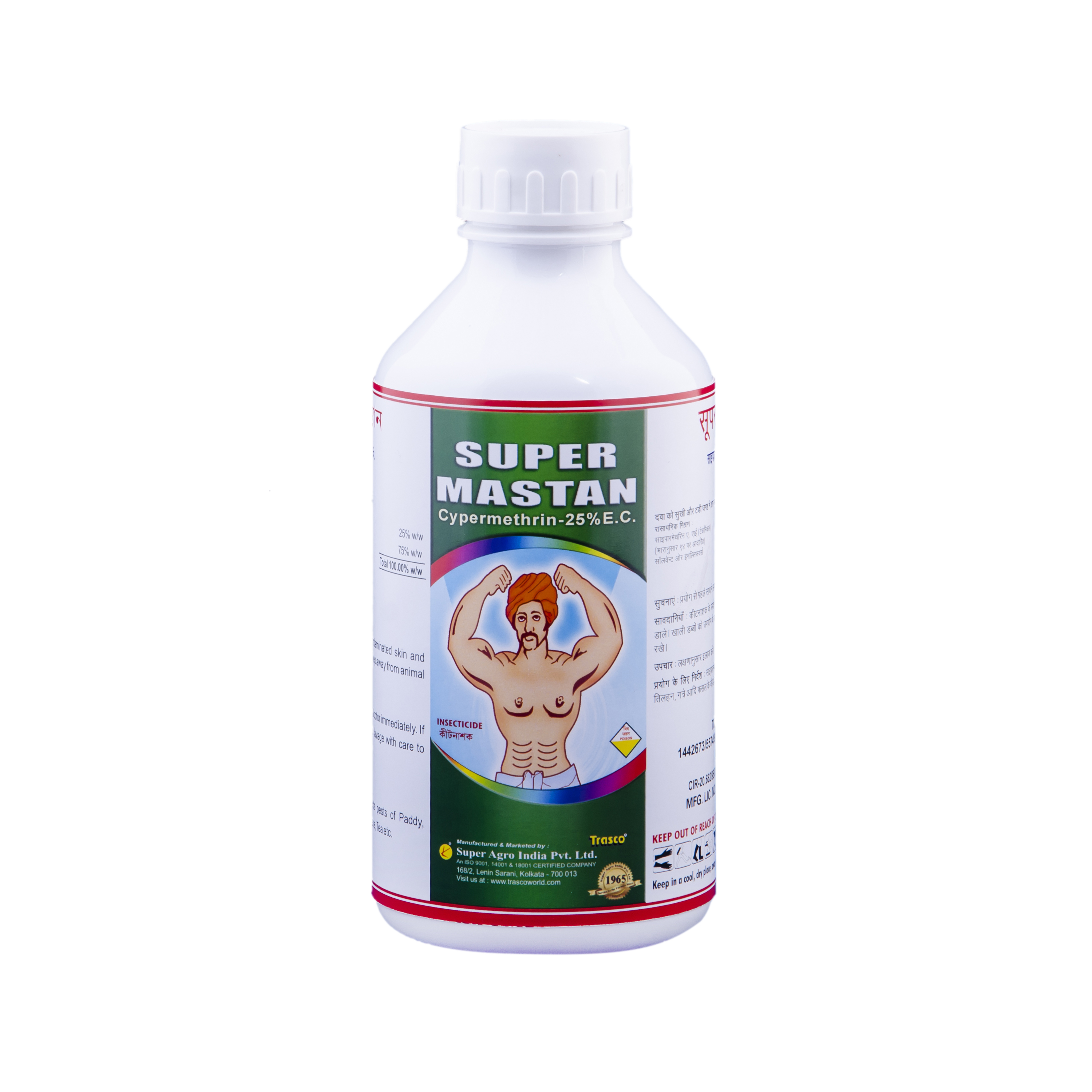 Technical cypermethrin is a mixture of eight different isomers, each of which may have its own chemical and biological properties. Cypermethrin is light stable. It is available as an emulsifiable concentrate . As a synthetic pyrethroid therapy. A highly potent, broad spectrum, contact and stomach poison, Synthetic Pyrethroid insecticide with quick-knock-down effect specially on Lepidopterous pests. Controls insects resistant to conventional insecticides. It is fast degradable, having a waiting period of only 1-3 days on Brinjal; 3 days on Okra; 7 days on Cabbage & Cotton & 14 days on Wheat & sugarcane. Bollworm, DBM, Fruit & Shoot Borer. A third generation S.P. insecticide used for controlling wide range of insects of agriculture crops and plantation crops, controls Bollworm, DBM, Fruit & Shoot Borer. Super mastan 25% EC is approved for the control of bollworms, jassids and thrips on Cotton, shoot and fruit borer and jassids on Okra and shoot & fruit borer, jassids and Epilachna grub on Brinjal. Super mastan 10% EC is approved for control of bollworms on Cotton, fruit borer on Okra, Shoot & fruit borer on Brinjal and in addition, diamond-back moth on Cabbage, early shoot borer on Sugarcane.
